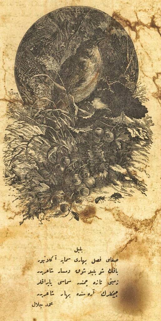 Bu yazımda bugün Hacettepe Üniversitesi Beytepe kampüsünde çektiğim bir bülbül fotoğrafıyla birlikte Mehmed Celal’in kaleme aldığı küçük bir bülbül şiirini paylaşacağım. Söz konusu yazı 2 Mart 1893 yılında Resimli Gazete adlı dergide yayımlanmış. Şiir, yuvasında bir bülbül resmi ile verilmiş.